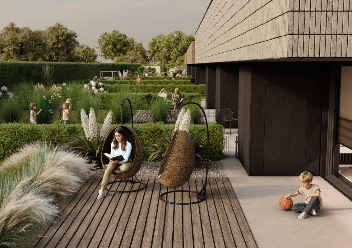 Każdy segment posiada duży ogródek, taras o powierzchni 10 m2.