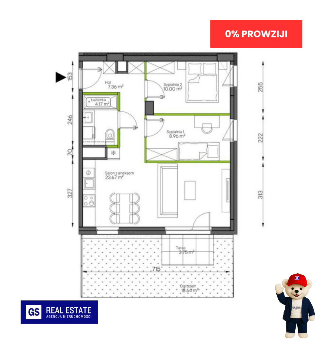 Zdjęcia w ogłoszeniu to wizualizacje o charakterze poglądowym i mogą różnić się od rzeczywistego wyglądu nieruchomości. Nie stanowią oferty handlowej w rozumieniu art. 66 § 1 Kodeksu cywilnego.