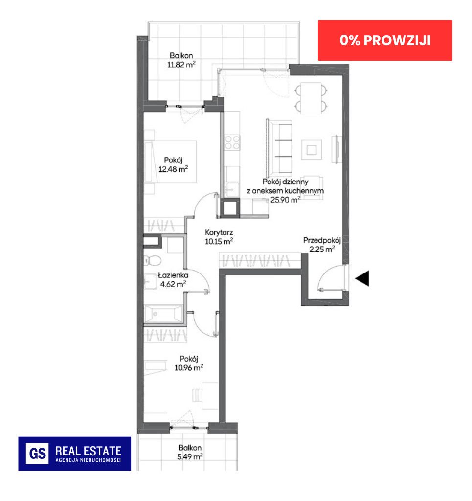 Pokój: 10,96m²